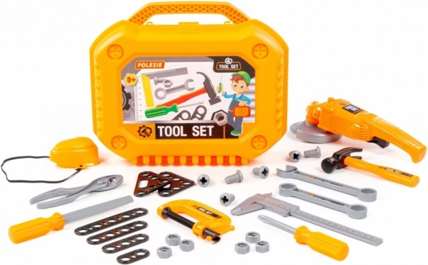 Completa valigetta per bambini con attrezzi con 30 pezzi, inclusa una realistica smerigliatrice con disco rotante. Il materiale plastico leggero e sicuro è ideale per bambini dai 3 anni, sviluppa motricità fine, creatività e pensiero logico. Grazie alla pratica valigetta portatile, i bambini hanno tutto in ordine in un unico posto.