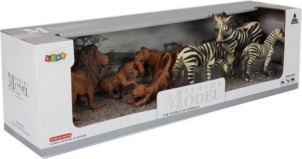 - 7 figurine (leone, leonessa, 2 cuccioli di leone, 2 zebre adulte, 1 puledro di zebra)