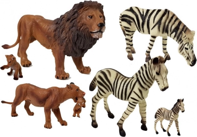 - 7 figurine realistiche – famiglia di leoni e zebre in diverse dimensioni