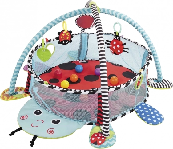 - Tappeto gioco a forma di coccinella, 2 archetti con giochi sospesi, 30 palline