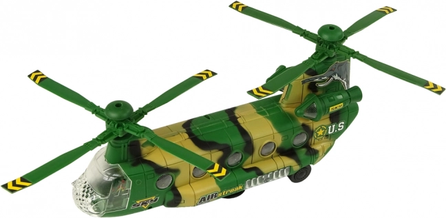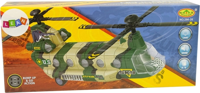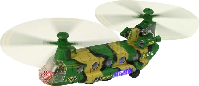 Con le funzioni di LED luminosi ed effetti sonori, come l'accensione e gli spari, questo modello garantisce un grande piacere e coinvolgimento. L'elicottero si muove grazie alle ruote poste sul lato inferiore, permettendo un movimento naturale sul pavimento.