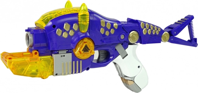 Trasforma facilmente tra il dinosauro Triceratopo e una pistola funzionante.