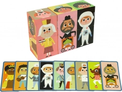 Come funziona il gioco? Il set include 9 carte, ognuna con un lato che mostra un personaggio diverso. Allo stesso modo, i blocchi hanno 6 lati con diverse teste o busti. Il tuo compito è abbinare i personaggi alle carte, il che richiede concentrazione, immaginazione e ragionamento logico. Queste attività sviluppano il bambino in molti modi, aiutandolo a riconoscere forme, colori e personaggi. La maggior parte delle carte rappresenta personaggi delle fiabe o professioni attuali.