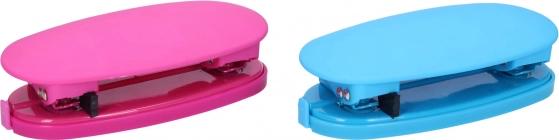 Pratica perforatrice per carta in colori moderni. Scegli tra la versione blu e quella rosa.