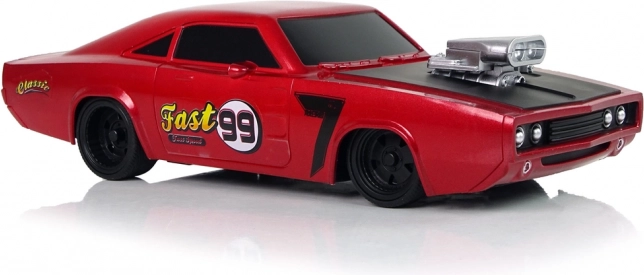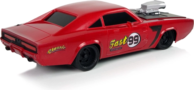 Il veicolo ha una struttura leggera e robusta, un design sportivo con elemento nero sul cofano e compressore argento, che dona un tocco grintoso. Gli pneumatici in gomma garantiscono aderenza alla strada. Guidare il veicolo è un grande divertimento, soprattutto per i più piccoli, per questo il telecomando incluso nel set permette di gestire il piccolo modello d'auto tramite due pulsanti separati per avanzare/retrocedere e sterzare.