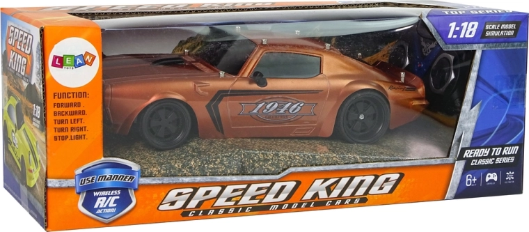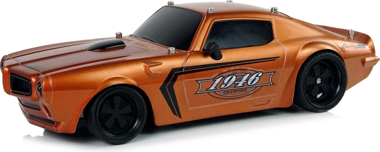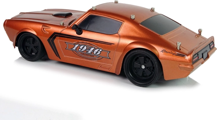 Il veicolo ha una struttura leggera e robusta, un design sportivo con finestrini neri e dettagli neri sul cofano e adesivi Champion 1946. Gli pneumatici in gomma garantiscono aderenza alla strada durante la guida. La guida del veicolo è divertente soprattutto per i più piccoli, perciò il radiocomando incluso nel set permette di controllare il piccolo modello d’auto con due pulsanti separati per avanzare/retrocedere e sterzare.