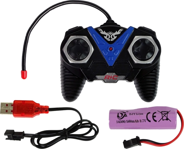 Il giocattolo con telecomando è certificato CE, garanzia dell’elevata qualità del prodotto e della sicurezza d’uso. Il modello del veicolo è alimentato dalla batteria inclusa da 3,7 V 500 mAh, mentre il telecomando (a due pezzi) da batterie AA da 1,5 V (non incluse). Adatto a bambini dai 6 anni.