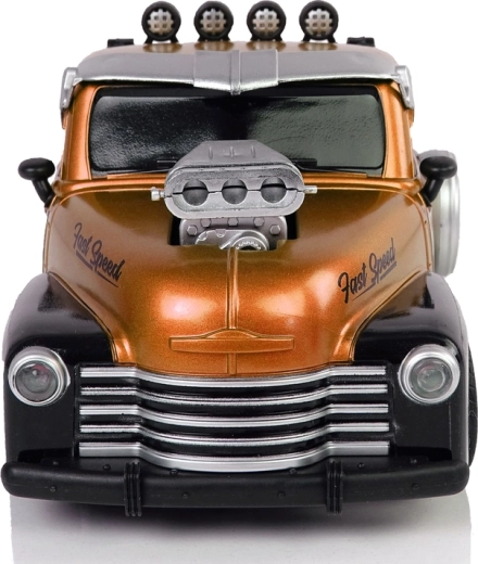 L’auto ha una struttura leggera e robusta; elementi come il compressore sul cofano o gli adesivi conferiscono all’insieme un carattere sportivo. Gli pneumatici in gomma garantiscono un’ottima aderenza alla strada durante la guida. Il telecomando incluso nel set permette di controllare il piccolo modello d’auto con due pulsanti separati per avanzare/retromarcia e per le direzioni laterali.