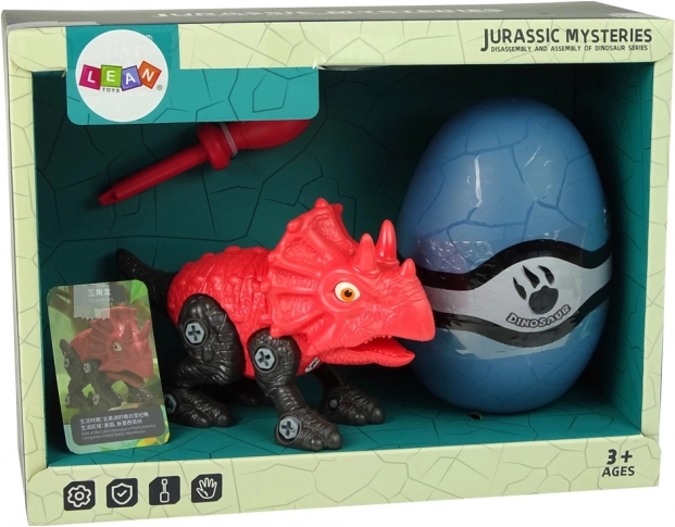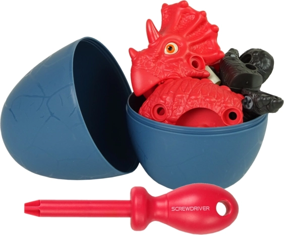 Costruisci il tuo triceratopo! Questo set creativo per bambini unisce divertimento fai-da-te, sviluppo della motricità fine e pensiero logico. Il dinosauro può essere smontato e riassemblato con il cacciavite incluso, le parti sono snodate e tutto si può riporre nell'ovetto. Realizzato in materiale sicuro e di qualità, con certificazione CE secondo la EN 71.