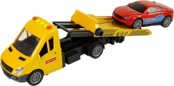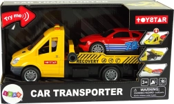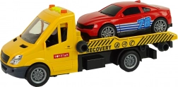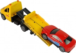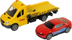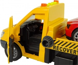 Mettiti nei panni di un piccolo soccorritore stradale. Il carro attrezzi ha portiere apribili, rampa sollevabile azionata da rotella e sezione rimorchiabile estensibile con gancio per collegare e tirare facilmente la macchinina. Gli effetti luminosi e sonori integrati (clacson, recupero con allarme, retromarcia) rendono il gioco autentico.