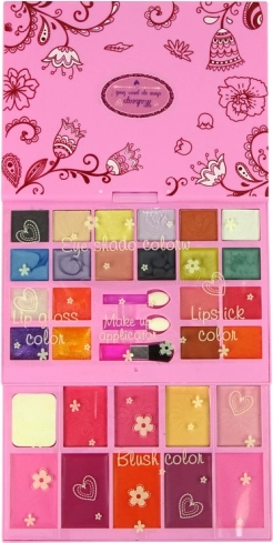 Ogni piccola ragazza sogna di essere come la sua mamma. Con questa palette può imparare le basi del trucco a suo modo. La palette contiene ombretti, fard, lucidalabbra e rossetti, tutto in una confezione pratica ed elegante.