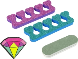 Include adesivi colorati, separatori scintillanti e campioni per creare disegni creativi sulle unghie.