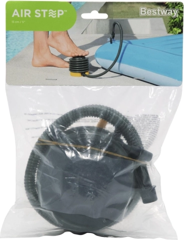 Pratica pompa a pedale BESTWAY alta 13 cm per il rapido gonfiaggio di materassi, gommoni e giocattoli. Offre gonfiaggio veloce, 3 adattatori intercambiabili, tubo flessibile e design compatto e leggero. Il materiale resistente e il volume di 500 cm³ (0,5 l) garantiscono un uso confortevole a casa e in viaggio.
