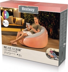 La poltrona gonfiabile BESTWAY con dimensioni 102 × 97 × 71 cm è una soluzione pratica per casa, dormitorio e terrazza. Grazie alla retroilluminazione LED integrata (7 colori) crea un’atmosfera piacevole durante un film, una serata di gioco o il relax dopo il lavoro. Una volta sgonfiata occupa pochissimo spazio ed è facile da trasportare.