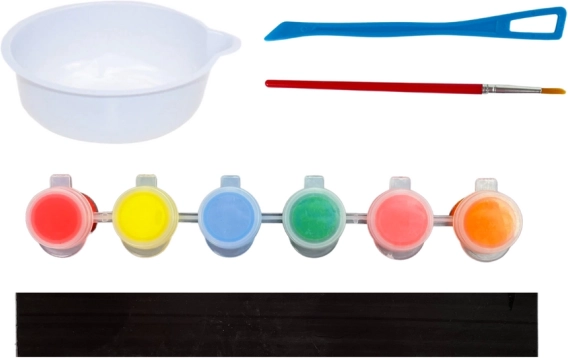 Include polvere di gesso, stampo per specchio, manico e sei colori per una completa personalizzazione.