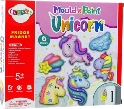 Utilizzando il gesso e gli stampi, crea splendide forme di unicorno e stelle. Dipingili con i colori forniti e decora il tuo frigorifero con magneti unici.