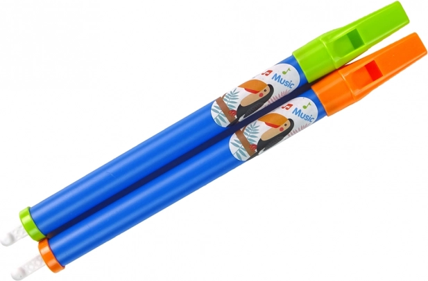 La confezione include due flauti, decorati con colori vivaci e motivi naturali. Un giocattolo che offre divertimento e un'opportunità per la creatività mentre si gioca con i suoni musicali.
