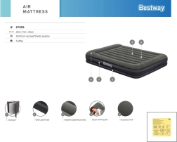 Il letto gonfiabile Bestway Queen Tritech è progettato per il massimo comfort e la massima resistenza. Il sistema di supporto interno Tritech è più resistente alla dilatazione e mantiene meglio la forma anche con carichi maggiori, distribuendo il peso in modo uniforme su tutta la superficie. La morbida superficie in velluto è piacevole al tatto e aumenta il comfort durante il sonno.