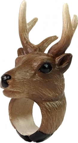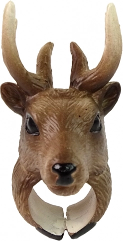 Scopri lanello divertente con testa di cervo realistica e corna ben definite. I bambini creeranno storie e scenette, imparando a riconoscere gli animali in modo ludico. Lanello è piacevolmente leggero, si adatta bene al dito e grazie ai colori atossici è adatto alluso da parte dei bambini.