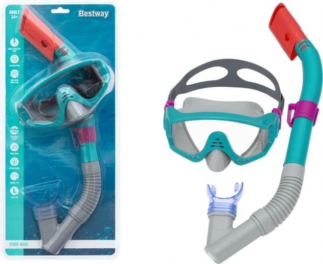 Il set per snorkeling BESTWAY per ragazzi e adulti dai 14 anni combina una maschera confortevole e un boccaglio per un'esplorazione subacquea sicura. La morbida guarnizione in silicone e la cinghia regolabile garantiscono aderenza perfetta senza infiltrazioni, la lente resistente con filtro UV protegge gli occhi e il boccaglio con morbidissimo mouthpiece e protezione anti-infiltrazione facilita la respirazione. Leggero e dal colore accattivante, è ideale per vacanze e piscina.