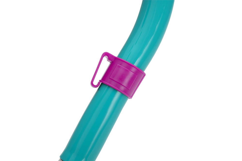Lo snorkel è dotato di mouthpiece in morbido silicone per respirare comodamente e di una barriera superiore anti-infiltrazione. La pratica clip di fissaggio alla maschera mantiene tutto in posizione per un movimento in acqua il più naturale possibile.