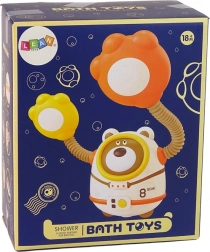 Questo divertente giocattolo d’acqua è ideale per i bambini che possono avere paura o non amare il momento del bagnetto. L’orsacchiotto astronauta con doccia a batteria integrata spruzza acqua dalle mani, rendendo il bagno più divertente e piacevole. Basta premere il pulsante on/off sul pancino dell’orsetto e il divertimento può iniziare!