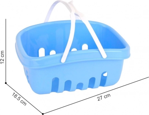 Cestino in plastica resistente con fori di aerazione e manici bianchi, facile da trasportare per i bambini. Le dimensioni compatte facilitano la sistemazione e il trasporto.