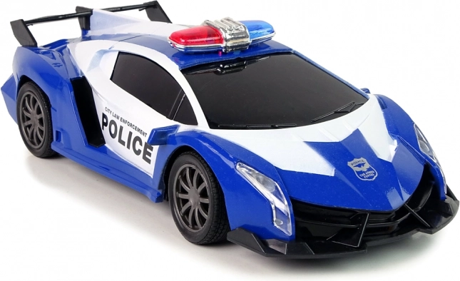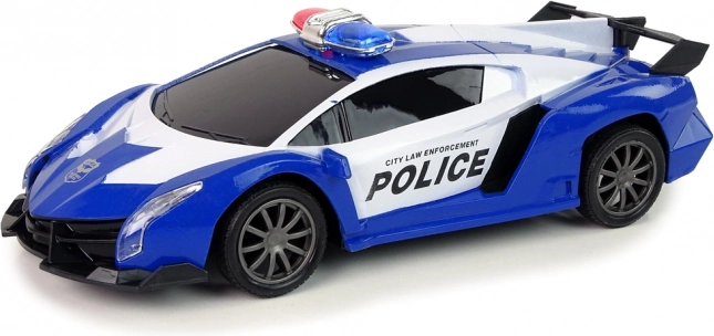 Parti all’inseguimento con l’auto RC sportiva in livrea blu e bianca. Le luci lampeggianti LED realistiche e il look dinamico stimolano l’immaginazione dei bambini, mentre il controller ergonomico assicura un controllo fluido e preciso. Ottima idea regalo: confezionata in scatola regalo con finestra e con certificazione CE.