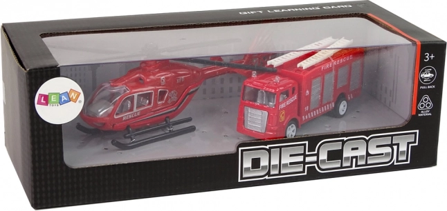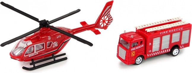 Nella confezione c'è una auto dei pompieri, elicottero e 6 carte con diversi veicoli. Grande divertimento per i bambini dai tre anni, il giocattolo è conforme alla norma EN71.