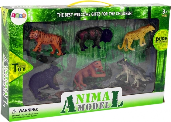 Nel set troverai 6 figure: orso, lupo, giaguaro, tigre, bisonte, leonessa. Altezza delle figure: 10 cm x 6 cm x 4 cm. Dimensioni della scatola: 45 cm x 27 cm x 7 cm.