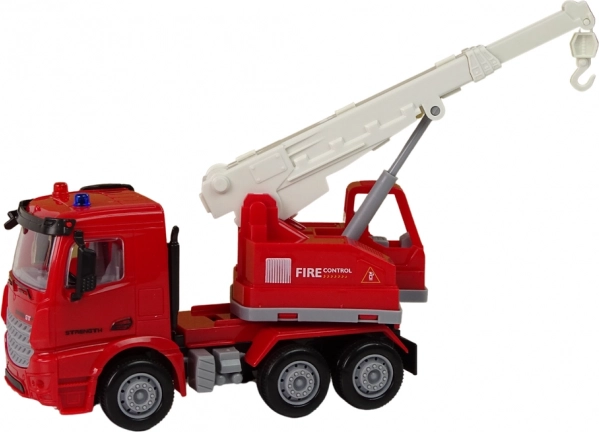 Il veicolo è equipaggiato con una gru con gancio, ideale per simulare sollevamenti e traini giocosi. La scritta 'FIRE CONTROL' e il design elegante stimolano l'immaginazione dei bambini.