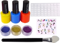 Presentiamo un set versatile per decorare unghie, che include smalti vivaci, vari adesivi stampati, glitter in polvere ed altri accessori creativi. Questo set è progettato per sviluppare la creatività e la motricità fine dei bambini mentre creano il loro stile unico.