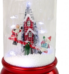 Porta a casa la magia del Natale con questa elegante sfera di neve con base rossa e scena con Babbo Natale, pupazzo di neve e paesaggio invernale. La sfera offre neve vorticosa automatica, illuminazione LED e modalità musicale con canti natalizi oppure modalità silenziosa solo con luce e nevicata. Una splendida decorazione che crea una calda atmosfera per le serate di festa.