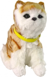 Questo realistico gattino di peluche dal manto bianco-rossiccio con striature marroni e collare giallo rimovibile incanterà ogni bambino. Una carezza sulla testa lo “anima”: miagola dolcemente e muove teneramente la testa e la coda. Il pelo morbido e soffice lo rende un compagno perfetto sia per la nanna che per i viaggi.