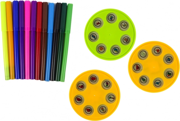Il proiettore viene fornito con un set colorato di pennarelli e tre diapositive con timbri per maggiore varietà e creatività.