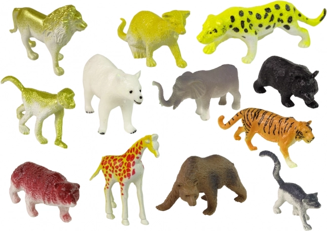 - Piccole figure di leoni, quattro figure di orsi, ghepardo, piccolo elefante, piccola giraffa, suricata, lemure e scimmia