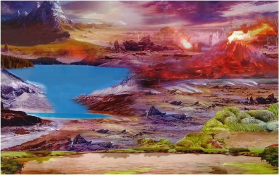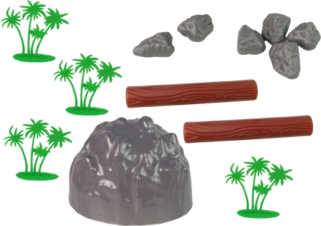 - 2 pezzi di legno, 4 palme, grande roccia, 6 piccole rocce