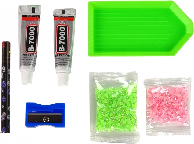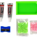 Stendi la colla, preleva i cristalli con lo stecchino in cera e posizionali uno a uno per un disegno scintillante e preciso.