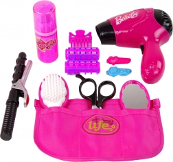 Il set è composto da elementi adatti alle piccole manine dei bambini. Include un phon e un arricciacapelli giocattolo, forbicine di plastica dall’aspetto realistico, un pettine rosa e uno specchietto, oltre a una scatola da parrucchiera in cui riporre e trasportare gli accessori. Il set comprende anche due fermagli decorativi per impreziosire l’acconciatura creata. Tutti i pezzi sono realizzati con cura dei dettagli, così la tua piccola parrucchiera potrà dedicarsi pienamente alla sua passione.