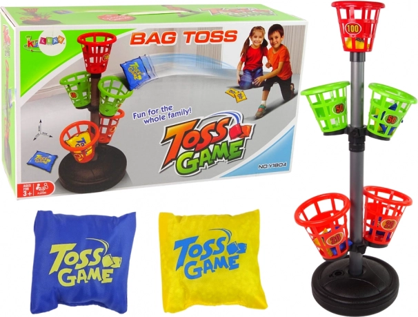 Il divertimento consiste nel fatto che ogni giocatore deve mirare con un sacchetto al cestino del proprio colore; su ogni cestino c’è un numero: dopo aver lanciato tutti i sacchetti, devi sommare i punti e vedere quale sarà il punteggio.