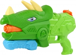 Vi presentiamo la pistola ad acqua Dinosaur Triceratops con una capacità di 1330 ml e una gittata fino a 8 metri. Questa pistola ha la forma di un dinosauro, è di colore verde-arancione e assomiglia a un personaggio dei film per bambini.