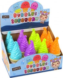 Questo giocattolo è perfetto per eventi speciali o per giocare insieme in giardino. Il contenitore ha la forma di un gelato. Il liquido all’interno è incolore: basta estrarre la bacchetta, soffiare o passare leggermente e appariranno davanti ai nostri occhi bolle colorate.