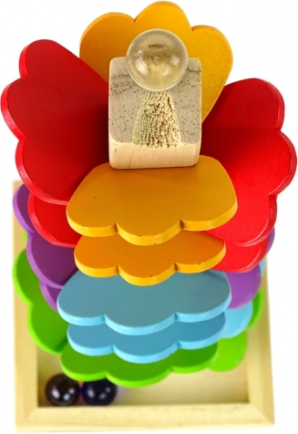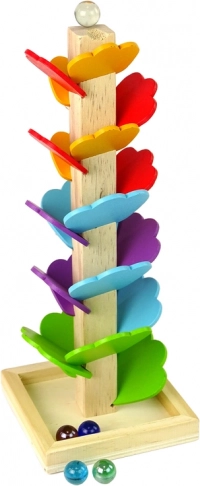 Metti la biglia in cima e guarda come, con un lieve ticchettio, rimbalza sulle singole foglie fino alla base: un divertimento che favorisce il tracciamento visivo e la coordinazione.