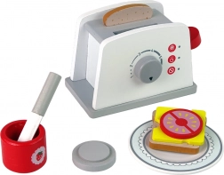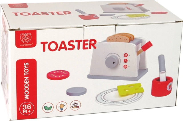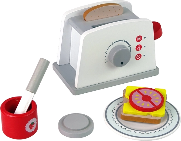 Nella confezione, oltre al tostapane, troverai anche fette di pane, un coltello, un vasetto di marmellata, una fetta di formaggio e una fetta di pomodoro per preparare i migliori sandwich. La lavorazione in legno è resistente, piacevole al tatto e delicata per le mani dei bambini.