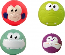Il set include quattro palline di gomma con motivi di animali, come coccodrillo, ippopotamo, pesce e scimmietta, che spruzzano acqua in modo divertente quando vengono schiacciate. Il canestro ha una retina con cerniera che si trasforma facilmente in un pratico spazio di contenimento per i giocattoli. L’asciugatura rapida impedisce la formazione di muffe.