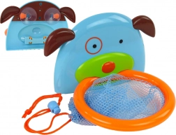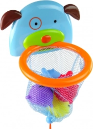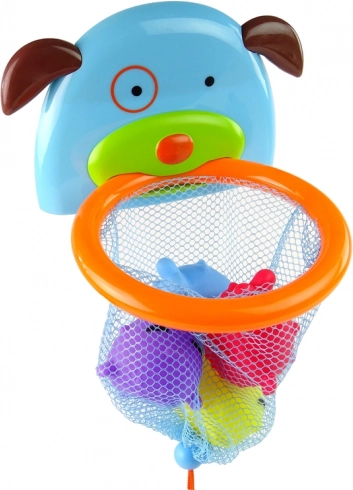 Questo giocattolo da bagno trasforma i momenti in vasca in puro divertimento. Il bambino lancia palline o pesciolini di gomma nel canestro da basket con il cagnolino, sviluppando concentrazione e abilità motorie. Il giocattolo dispone di ventose che aderiscono facilmente alle superfici lisce, così da poterlo fissare su piastrelle o vetro.
