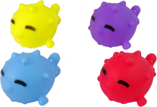 Il set include quattro pesciolini di gomma colorati con fori per l’acqua. Premendoli, l’acqua spruzza in modo divertente, facendo ridere i bambini.