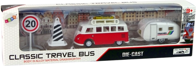 Questo set è realizzato in plastica della massima qualità, ogni dettaglio è lavorato con precisione per sembrare un modello reale. Il grande autobus può ospitare un gruppo di personaggi e l'interno è realistico. Un piccolo gancio permette di fissare il caravan, che funge da rifugio durante i viaggi. I segnali stradali inclusi possono essere posizionati sul percorso dell'autobus. Ogni parte del set può essere combinata o utilizzata individualmente a seconda dei desideri del bambino.