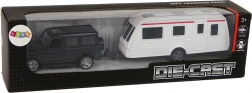 Il giocattolo consiste in un modello di auto, progettato per il comfort, e un rimorchio abitabile. L'auto è dotata di trazione posteriore: basta tirarla indietro e osservare come va avanti. Le porte del SUV sono apribili.