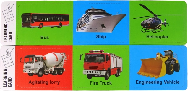 Il set include carte con diversi veicoli che aiutano ad ampliare il vocabolario dei bambini e a far loro conoscere i vari tipi di veicoli.